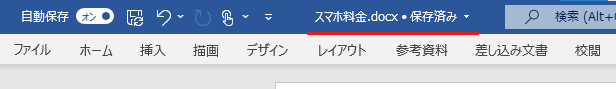 ファイルに変更を加えると自動保存されて、ファイル名の場所が「保存済み」となります。
