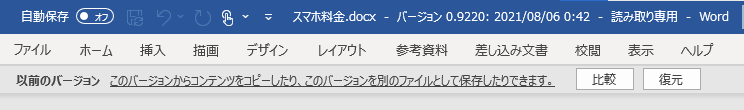 以前のバージョンを復元することができます。また、現在のバージョンと以前のバージョンを比較することができます。